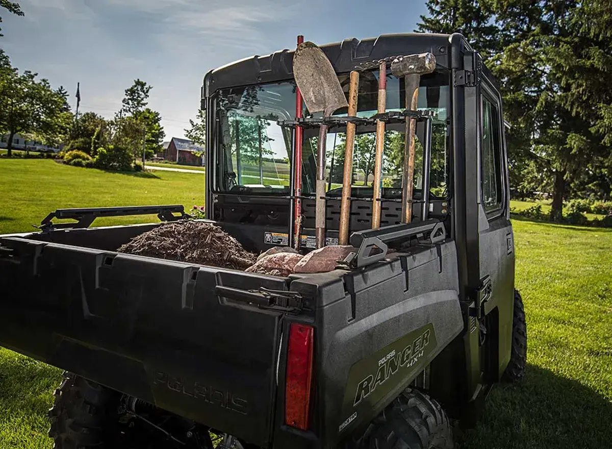 O RANGER SP 570 com EPS entrega 44 cv, reboque de 680 kg, caçamba de 226,8 kg, direção elétrica, suspensão reforçada e proteção completa — agora com mais armazenamento e segurança extra.