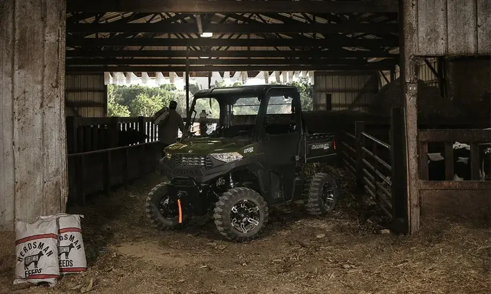 O RANGER SP 570 com EPS entrega 44 cv, reboque de 680 kg, caçamba de 226,8 kg, direção elétrica, suspensão reforçada e proteção completa — agora com mais armazenamento e segurança extra.